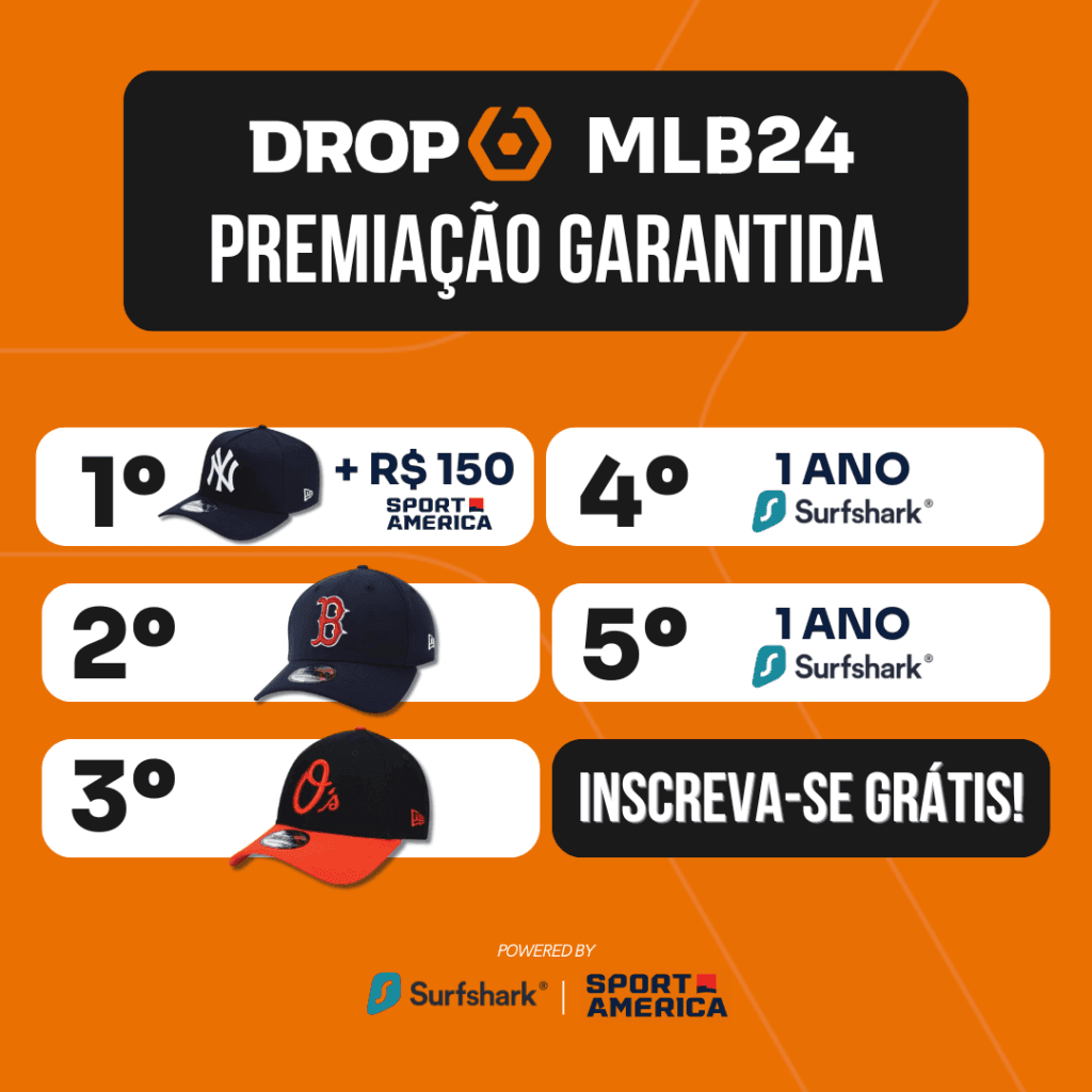 O Drop6 MLB é apenas o nosso primeiro passo na jornada dos esportes americanos, já que teremos disputas das outras ligas como NFL (em setembro), NBA e NHL (ambas em outubro). Quer um outro ótimo motivo pra participar? Temos premiações já garantidas para os 5 primeiros colocados, que vão desde assinaturas na SurfShark a bonés da MLB e vouchers na Sport America.