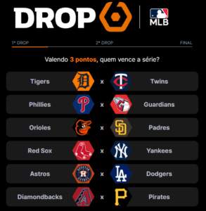 O Drop 6 segue firme e forte! As séries de sexta-domingo já estão disponíveis para palpitar aqui. Tem série entre dois dos três melhores times do país em Phillies x Guardians, a reedição da polêmica World Series de 2017 entre Astros x Dodgers, a maior rivalidade do beisebol em Red Sox x Yankees e muito mais! Por isso, não vai esquecer de palpitar, hein?
