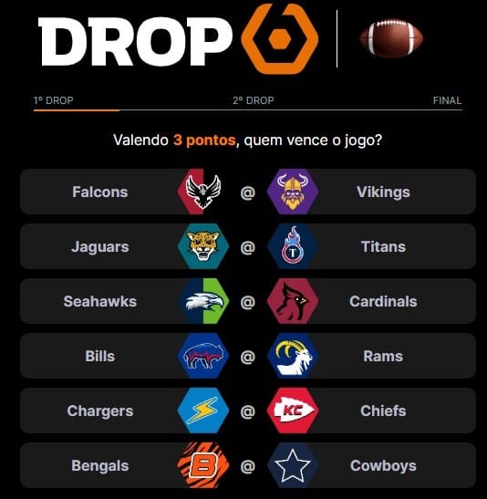Bem amigos da rede FNN, a rodada 7 está nos livros! Teve gente perdendo a Droppada por um TD com conversão de dois pontos nos segundos finais, time sendo massacrado no horário nobre, muitos jogos disputados e quarenta e seis droppers gabaritando os 6 jogos, o que mexeu bastante com a classificação do campeonato. Por isso, que tal fazermos um breve review sobre tudo que aconteceu na semana 7 do Drop 6 da NFL 2024?