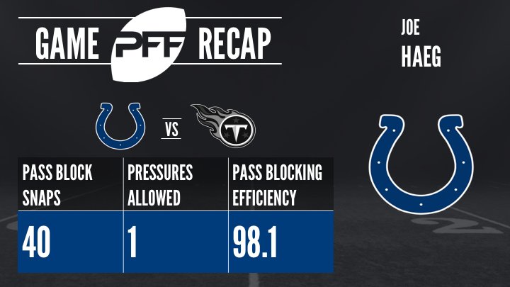 - Apesar das críticas iniciais quando saiu o lineup do time, Joe Haeg surpreendeu os torcedores com a partida que fez. Enfim uma boa atuação do lineman como RT.