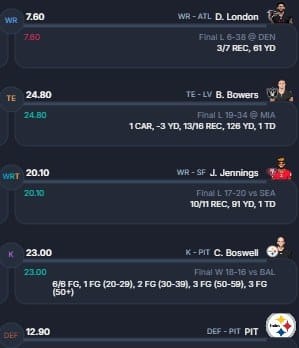 Em um duelo importantíssimo para ambos na Liga dos Creators (que iremos comentar mais abaixo), o time da FN Network (7-3) acabou vencendo o PinkZone Brasil (4-6) por 0.04 pontos, ou seja, UMA jarda. A diferença antes de começar o MNF era de pouco menos de 9 pontos para o PinkZone, que só precisava que o kicker Ka’imi Fairbairn, dos Texans, pontuasse nove ou menos. Bem, isso estava acontecendo até o momento em que Houston fez um TD faltando 3:16 para acabar o jogo e Fairbairn chutou o XP, marcando o ponto da vitória da FNN. Insanidade total!