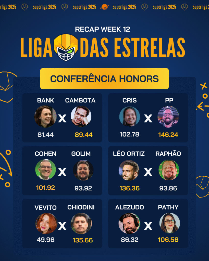 Desafiantes, a semana 12 da Superliga de Fantasy está nos livros! Em uma semana com muitos jogos equilibrados no domingo, diversas prorrogações e atuações surpreendentes, nada melhor do que conferir o Recap Superliga da Semana 12.