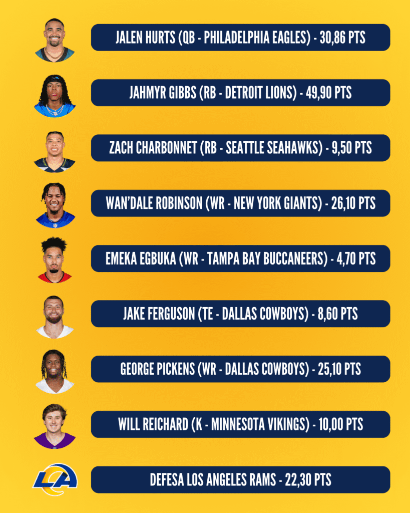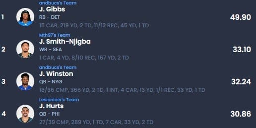 - Jahmyr Gibbs (DET) – 49.90 pontos