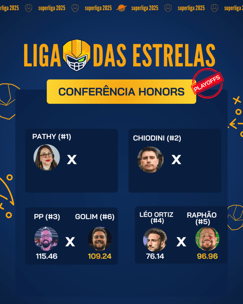 Os playoffs começaram com tudo na Liga das Estrelas! Pela conferência dos Creators, o Gabriel Chudis massacrou o Alex em uma vitória de mais de 65 pontos de vantagem! Além disso, a Dani derrotou o Lucas Coppi por somente dois pontos (conquistados justamente por Jalen Hurts). Com isso, teremos Léo enfrentando a Dani e Chudis enfrentando o Bulio, valendo vaga na grande final!