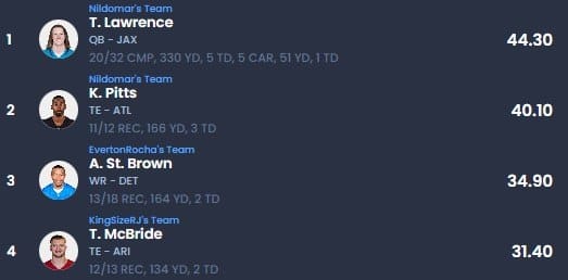 - Amon-Ra St. Brown (DET) – 34.90 pontos