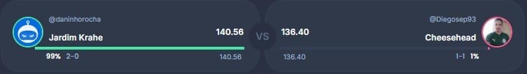 Mesmo fazendo 136.40, o suficiente pra ganhar de boa parte dos desafiantes da Superliga, o Diego Suarez acabou sofrendo a virada no seu confronto no MNF, quando DeVonta Smith e Jake Elliott conseguiram fazer 22,10 pontos, para garantir a vitória do Jardim Krahe, em um duelo entre times 1-0. Que azar…