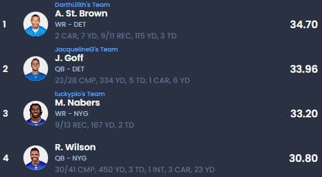 1. Amon-Ra St. Brown (DET) – 34.70 pontos
