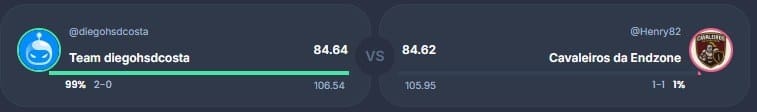diegohsdcosta x Cavaleiros da Endzone – 0.02 pontos (Liga 166) e