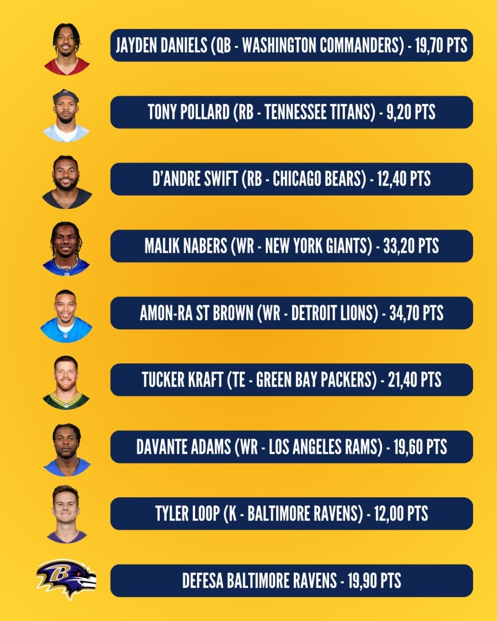 0.02 pontos cada jogo! Por apenas 2 jardas, o Diego e o Mixirica venceram seus respectivos confrontos contra o Cavaleiros da Endzone e Ohulkesmaga. A vitória do Diego foi garantida no FG de apenas 37 jardas errado por Chase McLaughlin, que acabou com as chances do Cavaleiro de vencer sua partida. Já o Mixirica se sagrou vencedor pelas boas pontuações de Nico Collins (12.70) e Jakoby Meyers (9.80), que superaram a pontuação de Bucky Irving (15.10) e Ladd McConkey (7.30) por apenas 0.10 pontos!