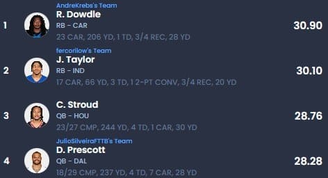 - Jacory Croskey-Merritt (WAS) – 26.00 pontos