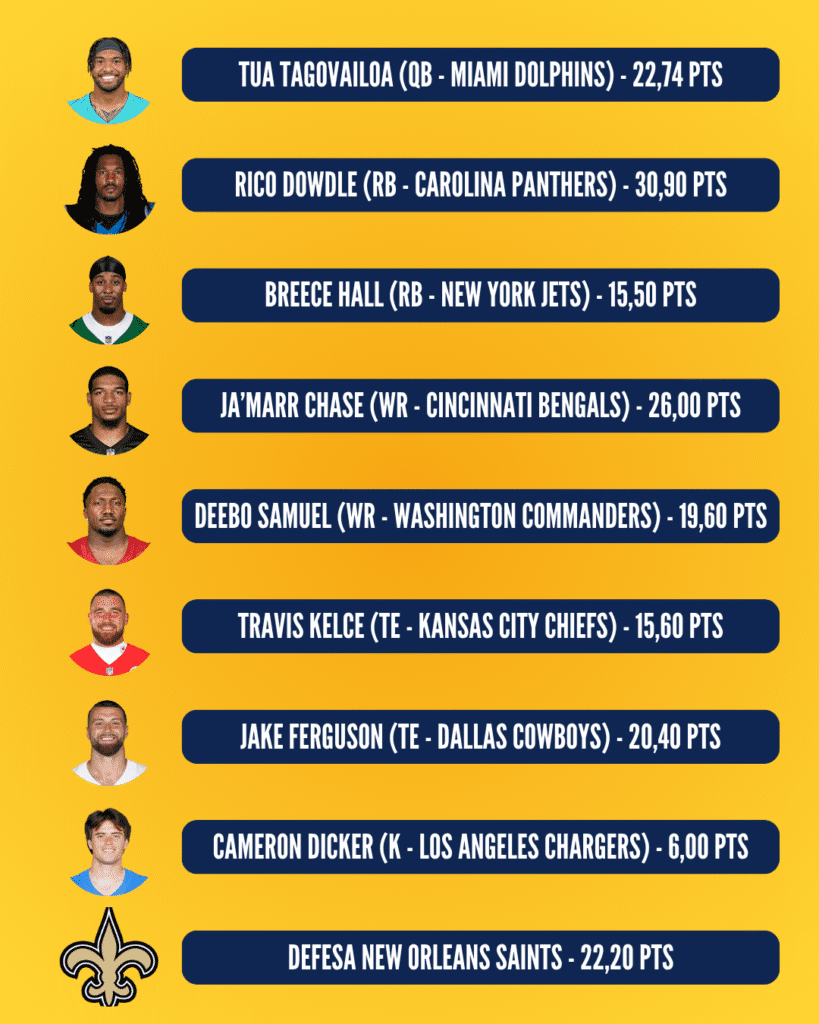 Diretamente da Liga 9, o Steelers Potiguar conseguiu fazer a maior pontuação da semana 5 e a segunda maior da Superliga 2025, em um duelo de equipes 2-2 contra o Jampa Espectros, com uma vantagem final de quase 100 pontos! Confira abaixo o time do líder da quinta semana do maior fantasy do Brasil: