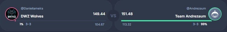 DWZ Wolves x Andrezaum – 149.44 pontos (Liga 104)