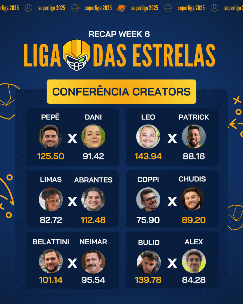 Desafiantes, a semana 6 da Superliga de Fantasy está nos livros! Em uma semana marcada por lesões importantes e performances extraordinárias de alguns craques, nada melhor do que conferir o Recap Superliga da Semana 6.