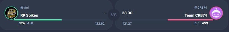 Pela primeira vez nesta temporada, o 5° confronto da nossa lista não figura dois invictos. Entretanto, emoção é o que não vai faltar entre RP Spikes e CRB74. Com 23.90 pontos de Christian McCaffrey, o CRB abriu boa vantagem no confronto, tendo ainda Justin Herbert, Emeka Egbuka e Omarion Hampton para pontuar. Seu adversário, RP Spikes, confia em Jayden Daniels, De’Von Achane e George Pickens para virar o confronto e manter a liderança da liga 160.