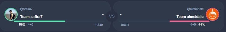 O Safira aposta na duplinha de Buffalo (Josh Allen e James Cook), além dos ótimos David Montgomery e Justin Jefferson para vencer. Seu adversário, Almeidalc, conta com um dos times mais jovens e promissores dentre todos os 2088 participantes, com Ashton Jeanty, Tetairoa McMillan e Tyler Warren. Apesar de estar sete pontos atrás de acordo com a projeção do Sleeper, será que rola upset?