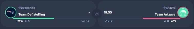Do outro lado, StrangerBlitz tem a melhor defesa da liga e espera contar com a sorte e com seu forte elenco composto por AJ Brown, Jameson Williams e Tyler Warren para alcançar a liderança isolada.