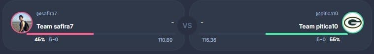 Na liga 34. temos um confronto que não foi impactado pelo jogo entre Giants e Eagles, deixando toda a emoção para domingo e segunda-feira. O Safira7 (que figura pela segunda semana seguida na nossa lista) confia em James Cook, David Montgomery e Deebo Samuel para suprir a importante ausência de Justin Jefferson (de bye week), para manter a liderança da liga. Já o outro invicto, Pitica10, vem com força máxima e conta com Jonathan Taylor, Bijan Robinson, DK Metcalf e Tucker Kraft para assumir a ponta. Quem será que vence?