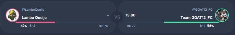 Duelo direto entre o líder, Pato Morto, e o vice-líder, Vladsnov, na Liga de Elite, que pela primeira vez aparece no nosso top 10 semanal. O Vladsnov saiu na frente com 15.50 pontos de Justin Jefferson, que poderia ser melhor, caso o WR tivesse melhores oportunidades de receber TDs nas idas do Vikings à redzone. Porém, o time ainda conta com DeVonta Smith e Travis Kelce para assumir o topo da liga.